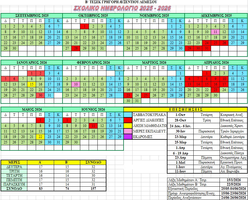 ΤΜΗΜΑΤΑ ΚΑΙ ΑΡΙΘΜΟΣ ΜΑΘΗΤΩΝ ΑΝΑ ΤΜΗΜΑ